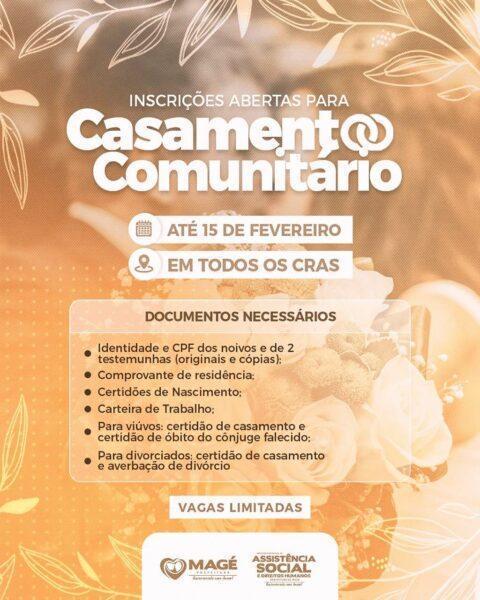 INSCRIÇÕES ABERTAS PARA CASAMENTO COMUNITÁRIO EM MAGÉ
