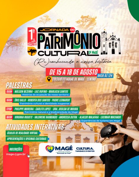 Magé celebrará a rica cultura pertencente no município. E para isso, a Prefeitura de Magé através da Secretaria de Cultura, Turismo e Eventos realizará a 1ª Jornada do Patrimônio Cultural de Magé, entre os dias 15 e 19 de agosto, de 9h às 12h, no Colégio Estadual de Magé. A semana de comemoração será recheada […]
