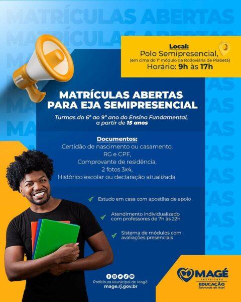 MATRÍCULAS ABERTAS PARA A EJA SEMIPRESENCIAL EM MAGÉ