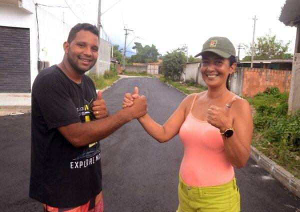 MORADORES DO BAIRRO BARBUDA COMEMORAM INÍCIO DO ASFALTAMENTO