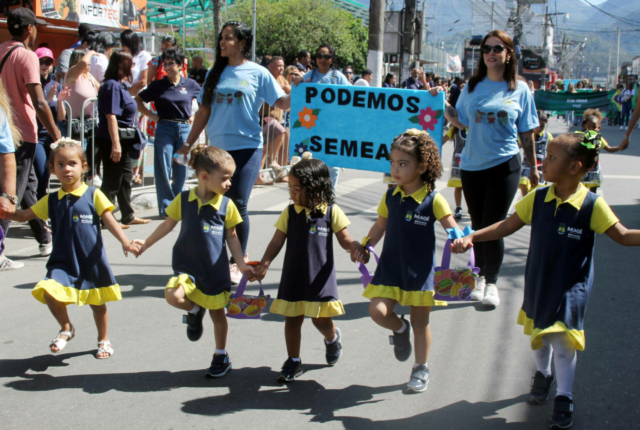 Já a secretária de Educação, Sandra Ramaldo, enfatizou o trabalho das equipes pedagógicas e o envolvimento das escolas na construção do desfile.