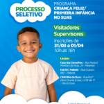 SUPERVISORES (AS) E VISITADORES (AS) para prestar serviço no ÂMBITO DO PROGRAMA CRIANÇA FELIZ/PRIMEIRA INFÂNCIA NO SUAS.