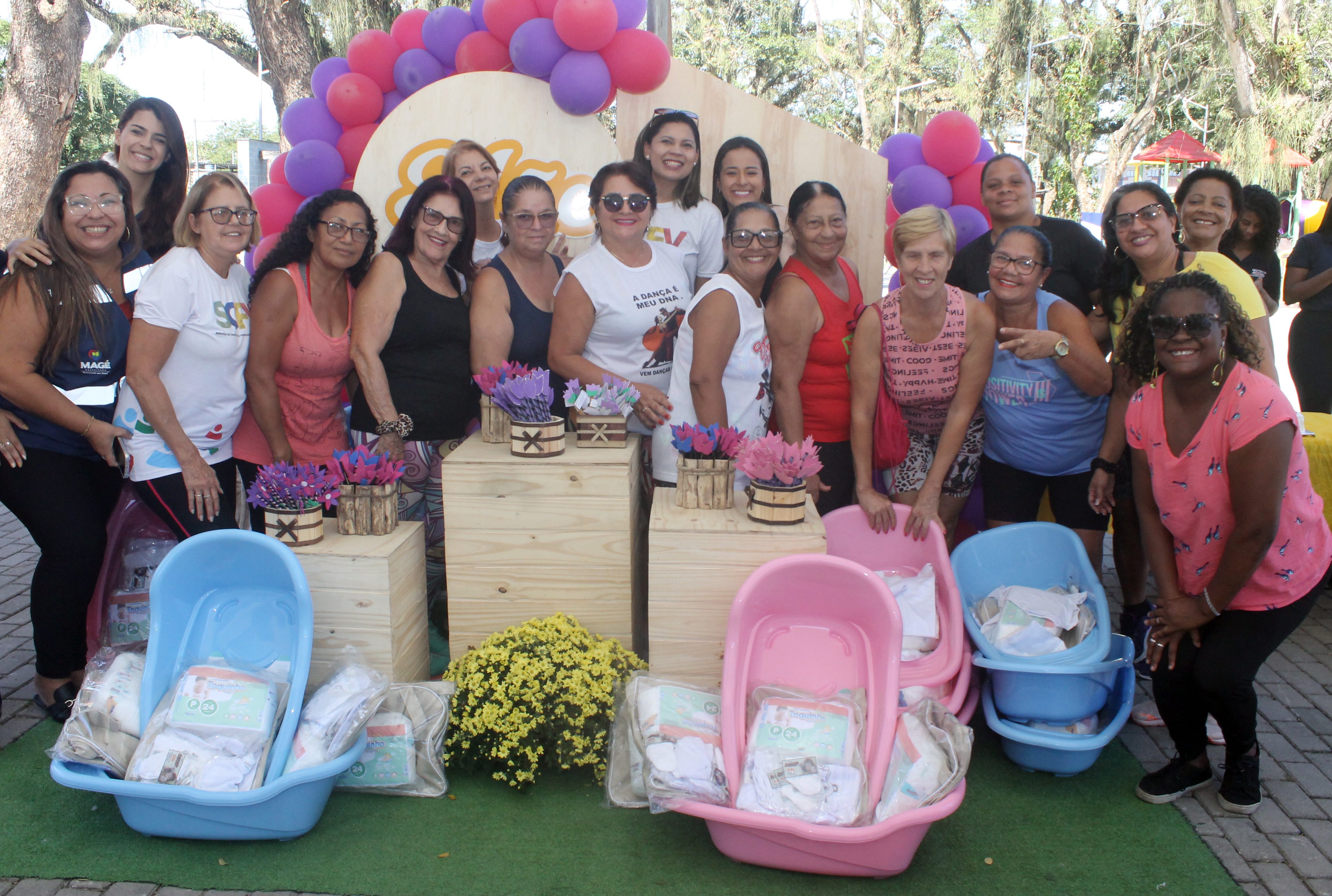 Durante o evento, foram entregues Kits de Natalidade do projeto Gestação & Amor, que incluem banheira, body, toalha, fraldas e meias.