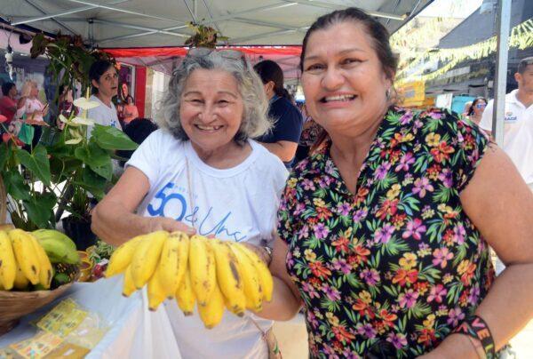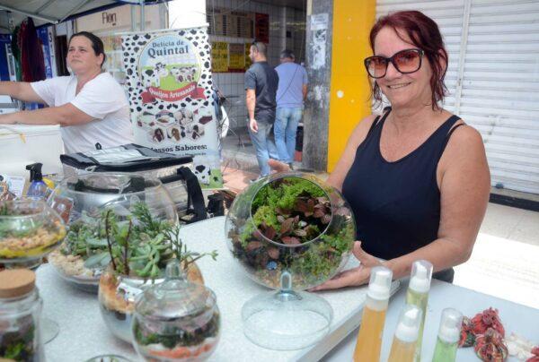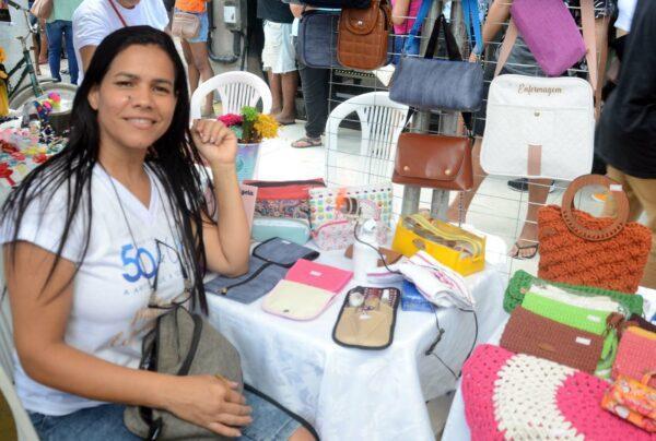 “Comecei a fazer artesanato durante a pandemia e outras mulheres começaram a me procurar para perguntar como vendia as peças. Percebi que juntas poderíamos criar uma teia, e assim surgiu o ‘50 e uns’, uma união de mulheres em torno do artesanato. Durante a pandemia éramos 10, agora somos 45. O objetivo é mostrar a arte de mulheres que estavam dentro de casa fazendo uma costurinha, e agora estão expondo na rua, obtendo renda. Esse feirão está mostrando para elas que a gente precisa estar legalizada. Agora elas podem ter uma maquininha, vantagens para empréstimo, CNPJ e assim parar de vender para comprar. Vamos ampliar negócios!”, afirmou Rosane.